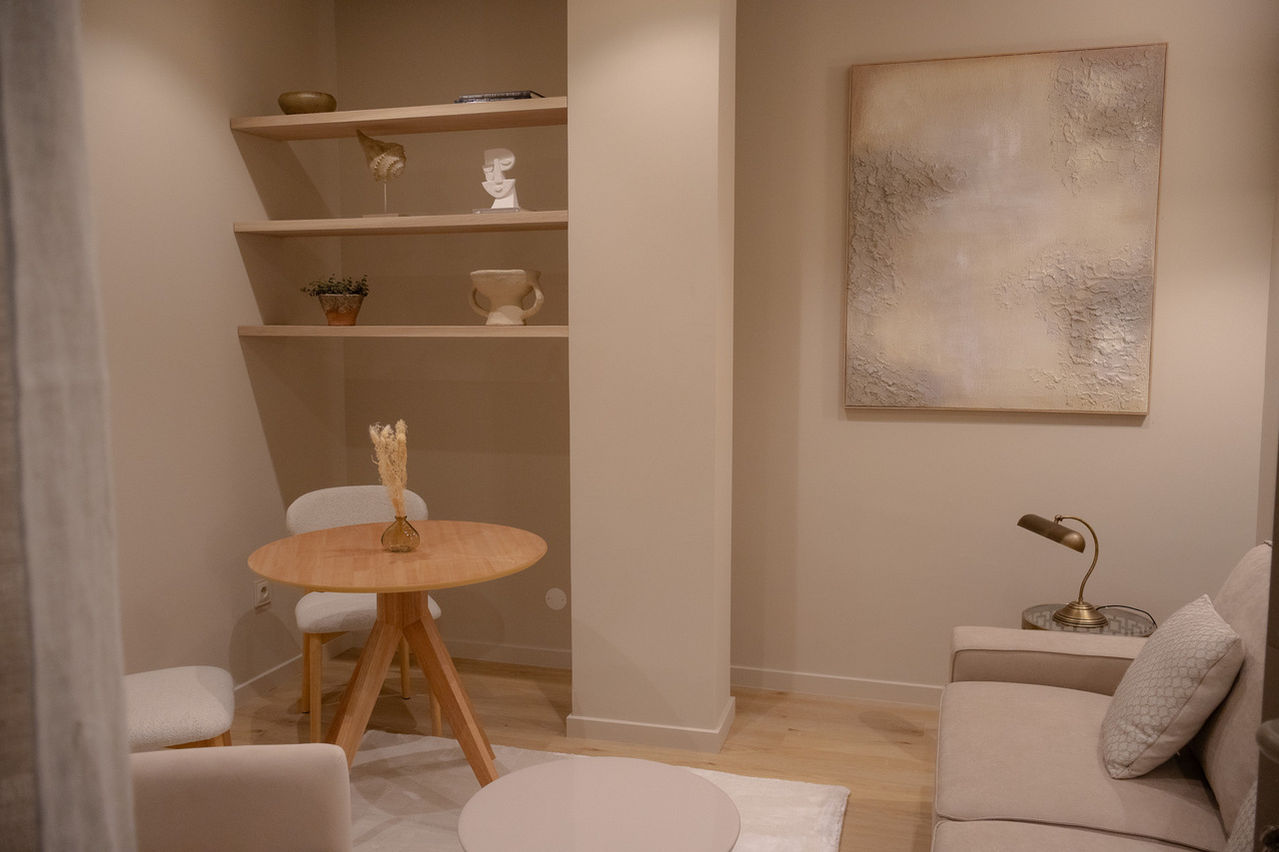 Idealizada para acolher práticas que envolvem o corpo e o toque. Um espaço sereno, funcional e privado, ideal para massagens e terapias manuais que pedem conforto, silêncio e concentração.